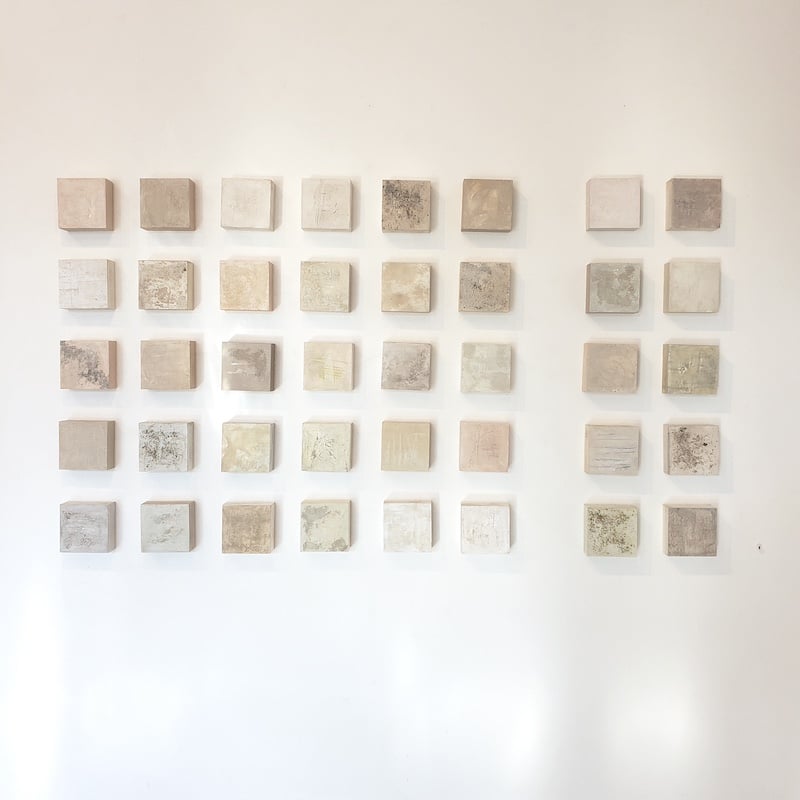 2018, mixed media on panel, 40 pieces, 4 x 4 each