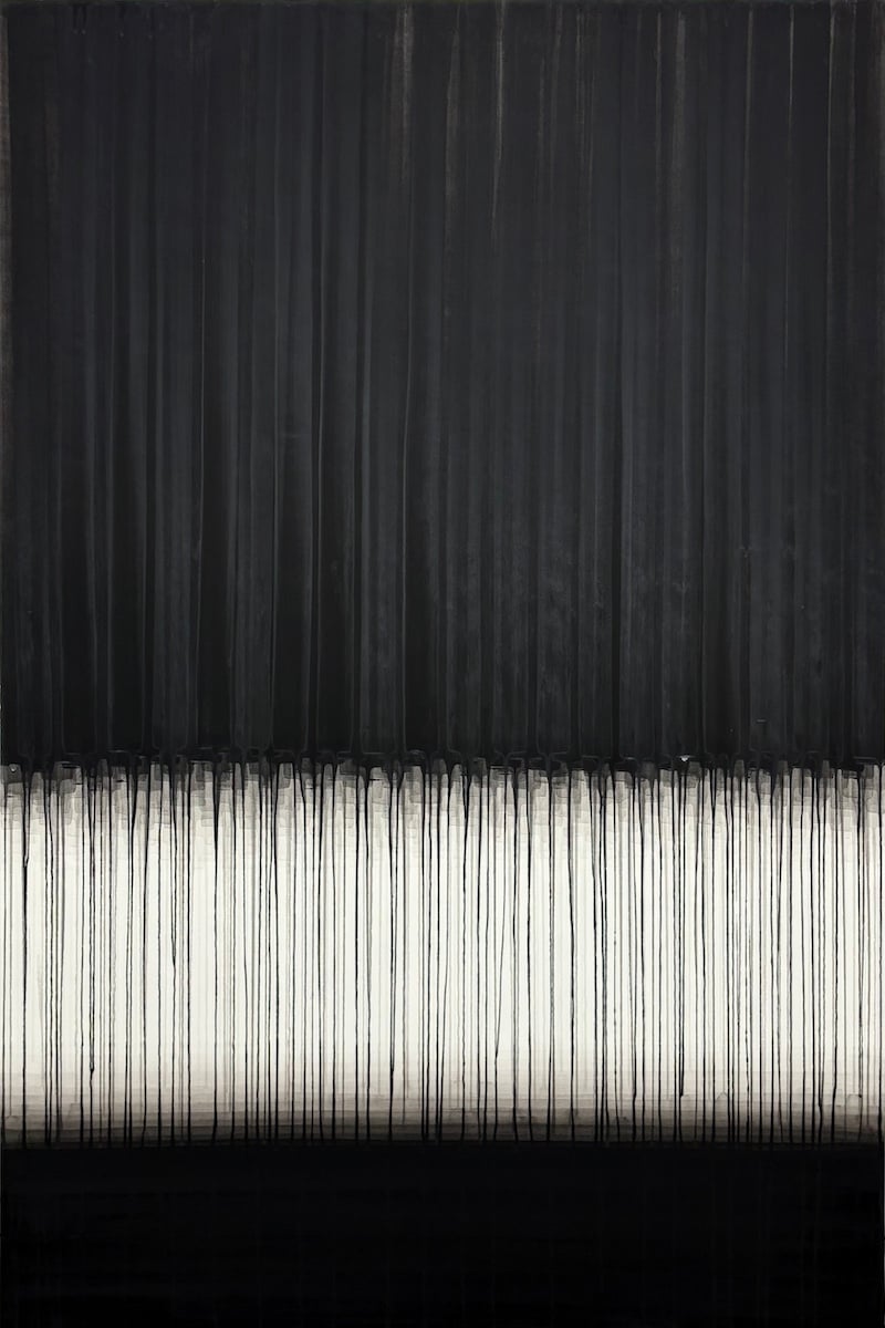 Joni Marie Theodorsen, 2025, black watercolor on paper on panel, 60x40